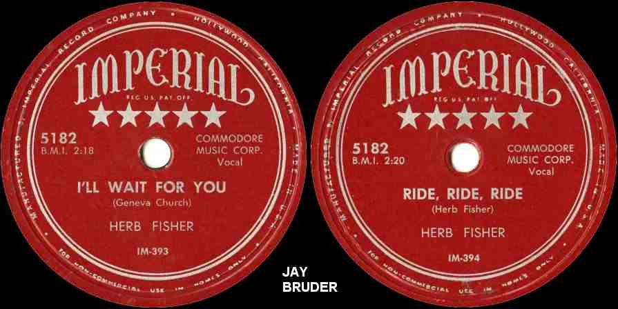 Another oddball one. The August 11, 1951 Los Angeles Tribune said: "Herb Fisher has been signed by Aladdin Records, according to his manager, personable Geneva Church. Sides due out in September." I'm still waiting.