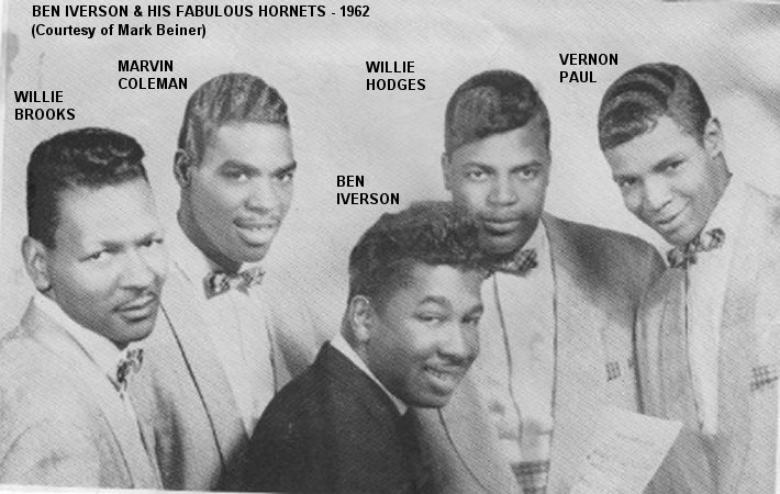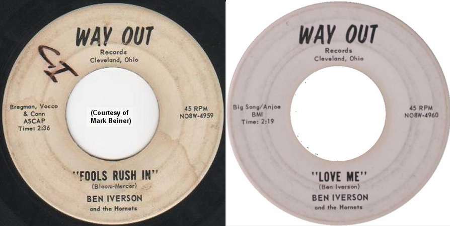 Speaking of "Fools Rush In", in 1962, the Hornets had two records released on the Way Out label (owned by Lester Johnson, Walter Roberts and football great Jim Brown). The Hornets back Lester Johnson on "Wedding Day" and "Jamaica Farewell". As Ben Iverson & The Hornets, the other record was "Fools Rush In" and "Love Me". Neither disk went anywhere, and the Hornets disbanded for the last time in late 1963. (Note that the Hornets on Flash were a different group.)