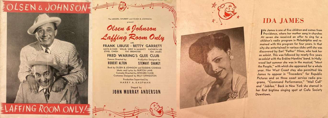 The show was also reviewed (enthusiastically) in the August 9 Billboard. Of Ida, they said: "Ida James, vocalist with the band, is a sepia beauty who even has sex in her voice. She sang Beau Night In Hotchkiss Corners and a short medley built around Daddy. Socked across with each one and could get off stage only by announcing the next act."