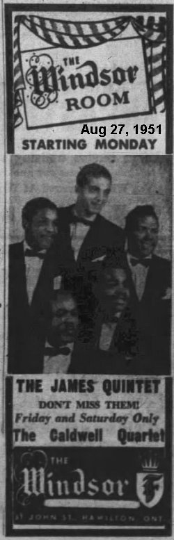 However, the September 5, New York Age said: "Betty Roche 'breaking it up' with the Austin Powell quintette - an absolute sensation everywhere she plays". Then, the September 9 Montreal Gazette said: "Currently at the Esquire Show Bar are Shecky Green, a comedian's comedian; the James Quintet in a different and novel musical act...." It's very confusing to me that both Austin Powell and the James Quintet are mentioned together and separately through much of the year. The only reasonable conclusion is that they both accepted separate bookings from time to time.
