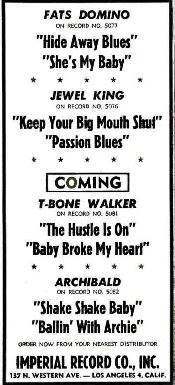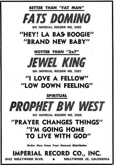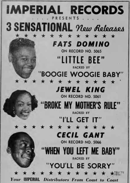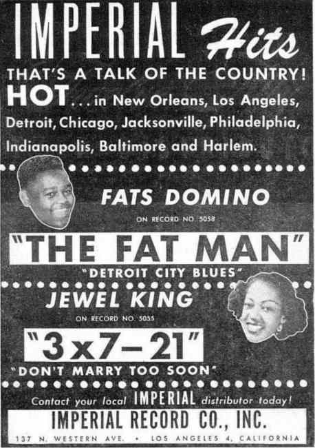 Imperial ads trumpeted "3 x 7 = 21" and the first release by another new Imperial artist, Fats Domino ("The Fat Man"). He sounds promising.