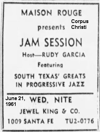 And then, the start of a series. On July 2, 1961, Jewel was part of a Jazz Festival held in Corpus Christi. This would become an annual event and Jewel was usually there.