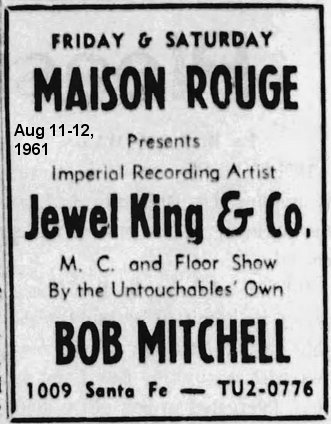 On May 20, 1961, Jewel was featured at the Maison Rouge (Corpus Christi). She was back on June 21.