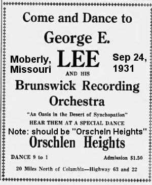 On February 11, 1929, the George E. Lee orchestra played for a dance at the E.A. Prinz Dancing Academy in St. Joseph, Missouri. Prinz gave an Easter dance at his academy on April 6, once again featuring the Lee orchestra (at the time, they were at the Pla-Mor in KC). On April 12, they played for a sorority dance at Prinz's. Since St. Joseph is about 55 miles from KC, the band was used to doing a lot of traveling.
