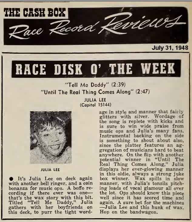 You think you know the songs Julia Lee sang, but you probably don't know the whole story. She is best known for her double entendre songs (or, as she put it: "the songs my mother taught me not to sing"), but there was a lot more to her than that.