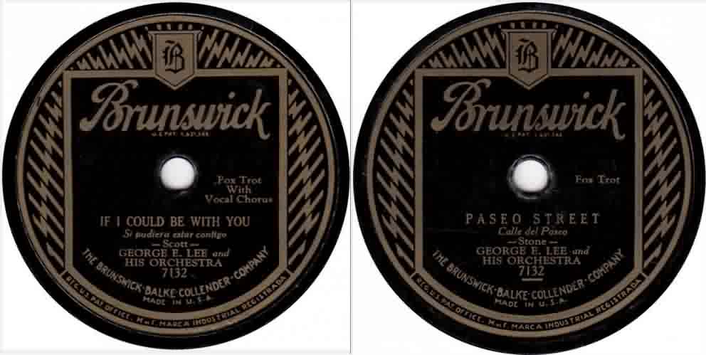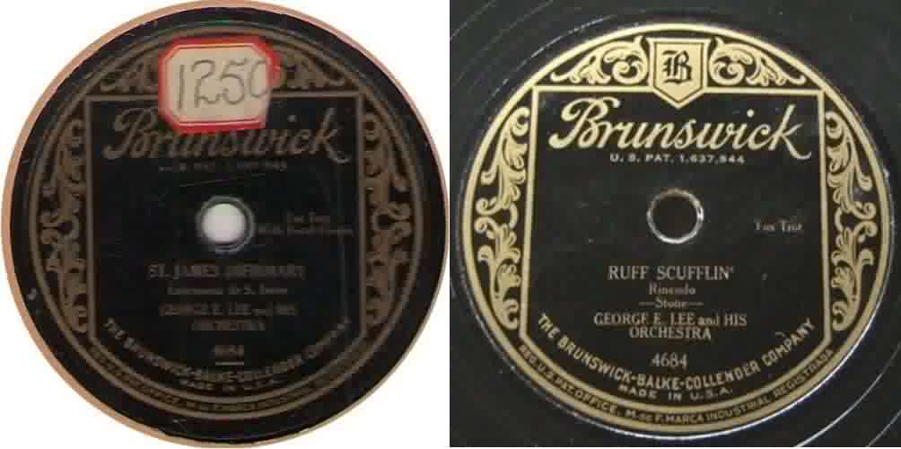 Brunswick released two "George E. Lee and His Orchestra" records in January 1930: "St. James Infirmary", paired with "Ruff Scufflin'" and ""If I Could Be With You [One Hour Tonight]", backed with "Paseo Street" To my untutored ears, all the Brunswick recordings are pure Kansas City "jass" from the 1920s.