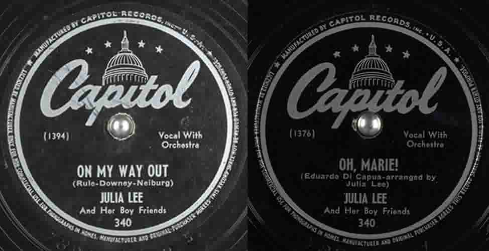 Julia M. Lee (nothing ever said what the "M" was for, although she used it on her first marriage license) was born on October 31, 1902, in Booneville, Missouri, to George Lee and Katie Redmond. She had two older brothers: George E(wing) Lee and Elmer Lee. George E. became a famous bandleader, but Elmer died young (tuberculosis, in 1923).
