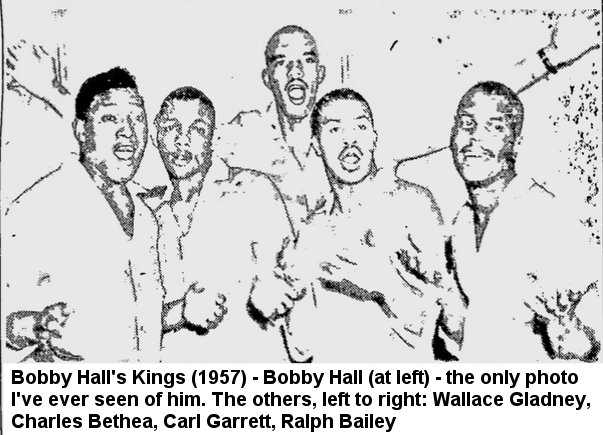 Bobby put together a new group of Kings, whose photo was in the June 1, 1957 Baltimore Afro-American (the others were Wallace Gladney, Charles Bethea, Carl Garrett, and Ralph Bailey). Their only known appearance was performing at a talent show held at P.S. 161 in May of that year.