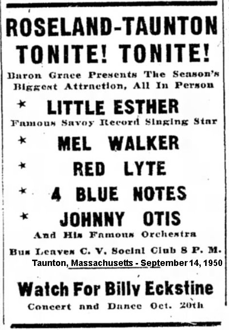 On July 1, 1950, Little Esther, along with Johnny Otis, Mel Walker, and Redd Lyte, made the cover of Cash Box magazine.