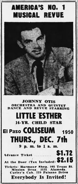 On December 7, the unit appeared at the Coliseum in El Paso, Texas. The next night, they were at the Armory in Albuquerque, New Mexico. Only Johnny Otis and Little Esther ("Child Star") were billed in the ads. The night after that, they were at the Sports Center in Tucson, Arizona. Also in December, Savoy released "Love Will Break Your Heart" and "I Don't Care".