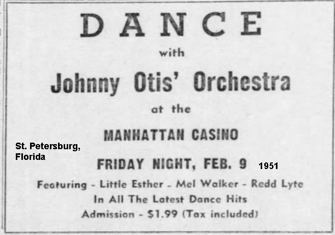 On February 9, the Otis crowd (including Esther, Mel, and Redd) appeared at the Manhattan Casino in St. Petersburg, Florida.