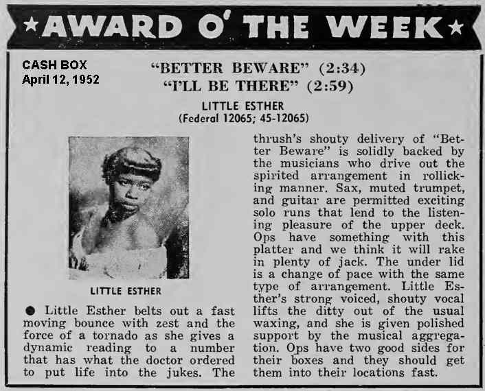 The January 20, 1951 Cash Box had a blurb titled "Little Esther Signs Contract With New Federal Label":