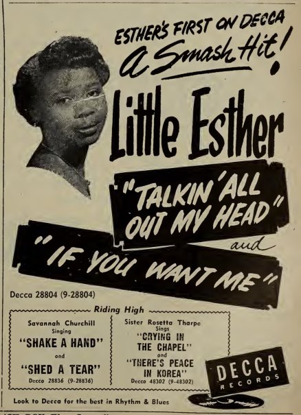 So, let's review. Before she'd turned 15, Little Esther had been on seven songs that made the Billboard R&B Top Ten in a single year. Not too bad.