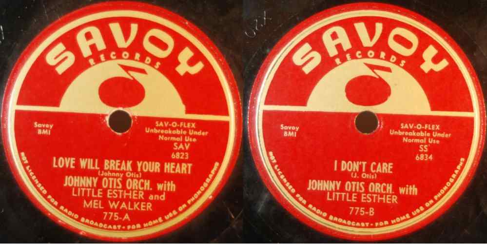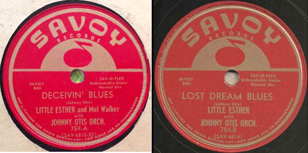 However, by the time the record came out, Otis had already switched his band to the Savoy label. Ralph Bass, who would go on to make a name for himself at Federal/King as a talent scout, producer, and a&r man, was, at this time, working for Herman Lubinsky's Savoy Records of Newark, New Jersey. Bass came to Johnny Otis' Los Angeles club, the Barrelhouse, liked what he heard, and recommended that Lubinsky sign the entire show: the Johnny Otis Orchestra, Melvin "Mel Walker" Lightsy (his male singer), Floyd Hollis (his MC, comedian, and other male singer), the Robins, and, of course, Esther Mae Jones. [Note that it's seen as both "Barrelhouse" and "Barrel House". Otis spelled the name of his club as a single word.]