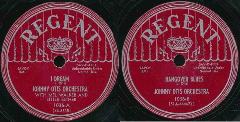A third March event was Savoy issuing the Little Esther-Mel Walker duet "I Dream" on its Regent subsidiary. The flip was the Johnny Otis instrumental, "Hangover Blues". "I Dream" was reviewed in the March 31 Cash Box, which said: "A terrifically unusual sounding disk is dished out here by Johnny Otis with Little Esther and Mel Walker going to town on the vocals. This ballad has a tremendous amount of appeal and could easily reach the heights that Little Esther's former disks have gone to." (In spite of that, it's one Little Esther/Mel Walker song that I don't like at all.)