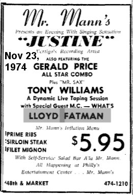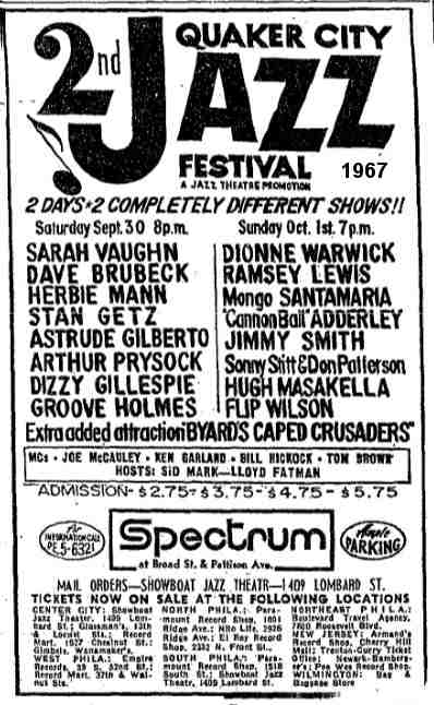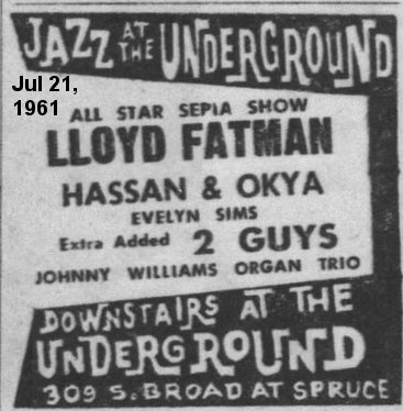 When he appeared at Nino's on April 7, 1967, he was advertised as "Lloyd Fatman And His Organ Trio". On September 30 and October 1, 1967 Fatman and Sid Mark were "hosts" at the Second Quaker City Jazz Festival. The first one, you'll recall, was held back in 1960.