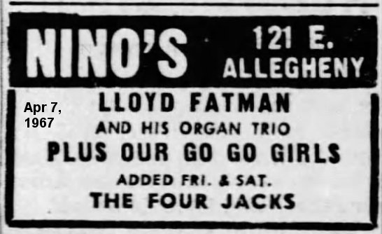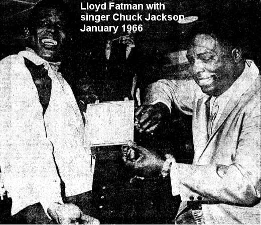 The January 29, 1966 Philadelphia Tribune said: "Temporarily out of radio, deejay Lloyd Fatman confirmed reports that he has the 39 Bar on West Market St. and a record shop at 31st and York to keep himself occupied." And, still an MC, he was at the East End Club from March 4-12, with singer Arthur Prysock as the star.