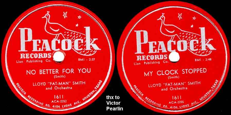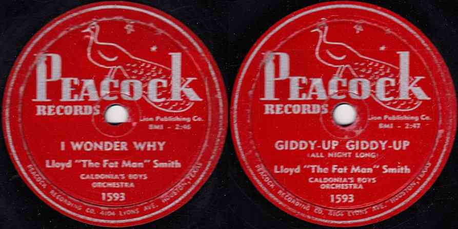 Peacock issued the two tunes, around January 1952, as "Lloyd 'The Fat Man' Smith", with the "Caldonia's Boys Orchestra". The "Caldonia's Boys" are Louis Jordan's touring orchestra.