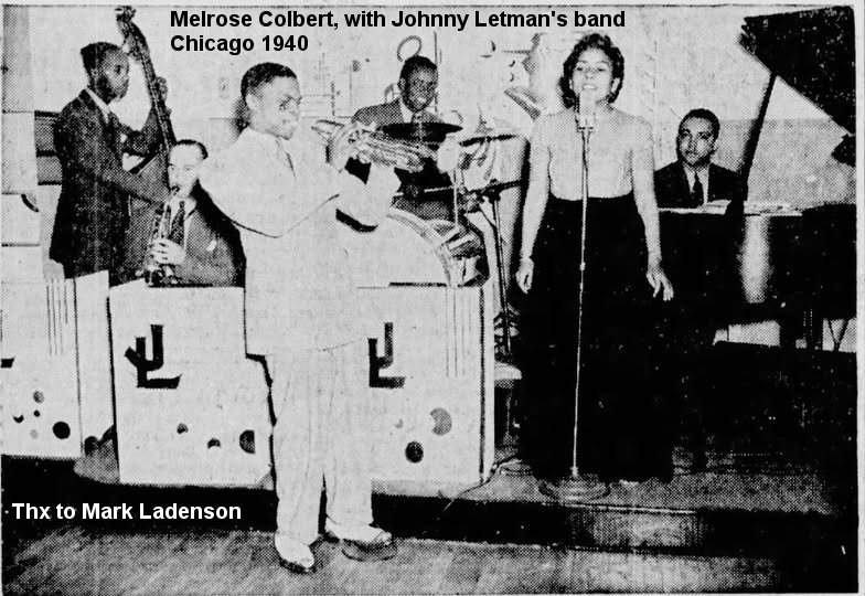 Mark Ladenson sent me a photo of Melrose, singing with trumpeter Johnny Letman's band, in Chicago, in 1940, although there's nothing else I can find that links the two. Letman would go on to become a part of Phil Moore's band in 1945.
