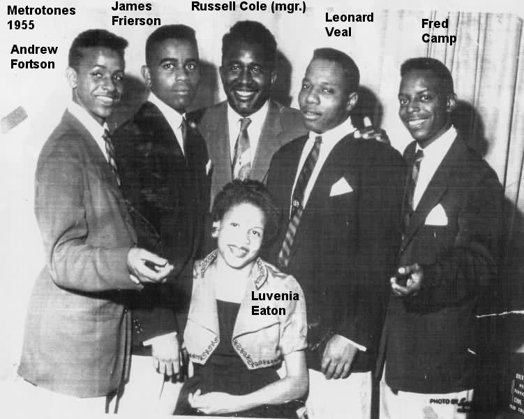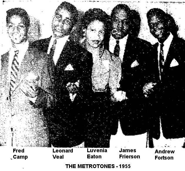 On December 30, 1955, the Metrotones were at the Karamu Theater at a party given by the Student Theater. The members were named as Melvin Smith, Leonard Veal, James Frierson, Charles Turner, and "LaVeria" Eaton.