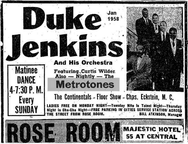 The Duke record, too, failed to take off. Then, there was the usual intervention from Uncle Sam and James Frierson was drafted (to be replaced by Robert Shepherd). Sonny Turner became a soloist, appearing around town with the Jimmy Landers Band; they were at the Rose Room in October 1958.
