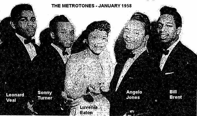 By mid-1959, Luvenia had also left. She's mentioned in an October 19, 1959 Cleveland Call And Post write-up of the Hound Dog's Den, where "Little Bena" ("gal star of the otherwise all-male Metrotones group which has raised so much sand locally through the past few years"); she also became a soloist and also worked with the Jimmy Landers' band on many occasions.