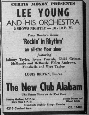 Although that September 4 blurb said that they'd be heading east after Denver, they ended up at Zucca's Terrace in Hermosa Beach, a little south of Los Angeles. They broadcast nightly over KHJ at midnight. A new vocalist/MC with the band was bassist George Bledsoe, who'd go on to be a member of Stanley Morgan's Ink Spots in the early 1960s.