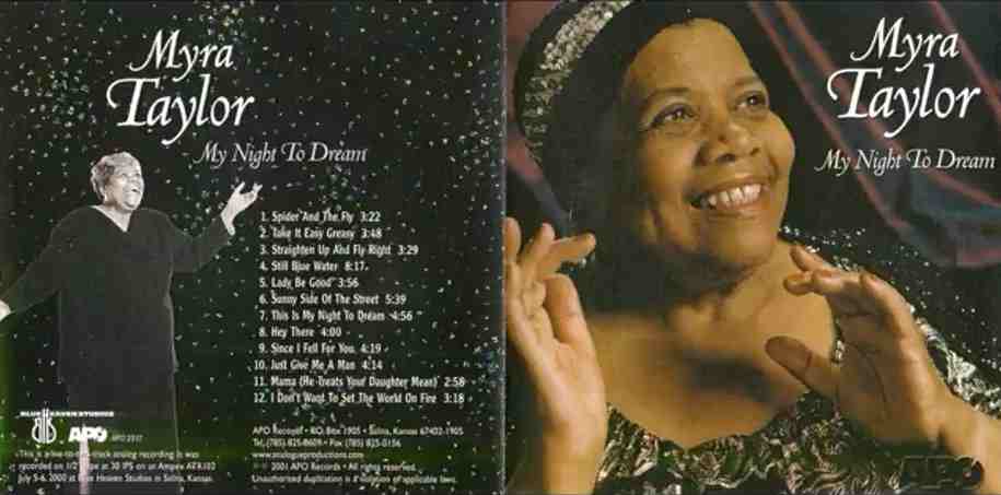 As I said at the beginning, Myra Taylor had a beautiful voice. Listen to "Still Blue Water" and "I'm In My Sins This Morning" from her early days, or "This Is My Night To Dream and "Since I Fell For You" from her 2001 recording session and see if you don't agree.