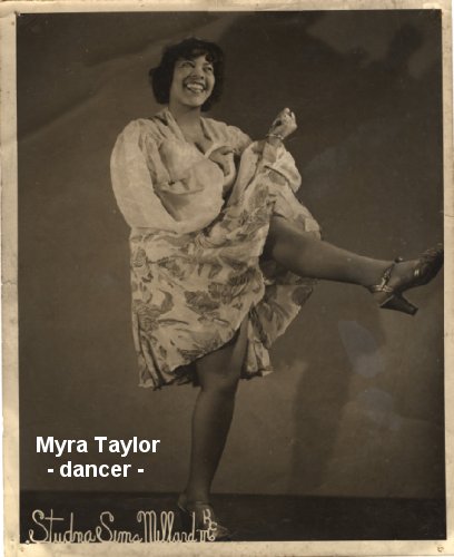 The May 22, 1937 Omaha Guide reported that Myra Taylor sang at the Spring Style Revue. She was called "the girl with that most pleasing smile in dance and song."
