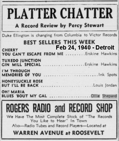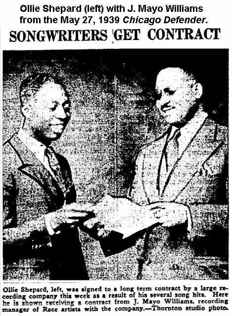 While I'm at a loss to figure out why only an Alabama paper printed that, it was echoed by the November 25 Billboard: "Veteran blues shouter and composer Ollie Shepard was signed to a term recording contract by Columbia records in another step to hypo that diskery's rhythm and blues department."