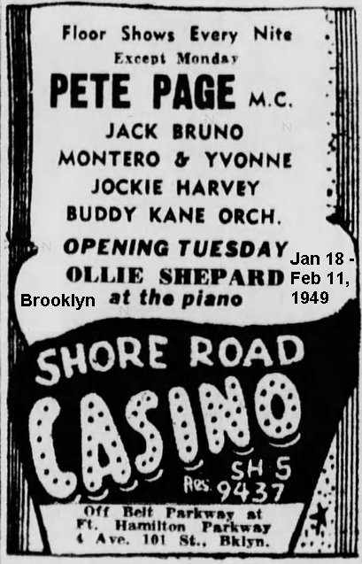 And then Ollie disappears again for almost two years. We next hear of him when, from January 18 to February 11, 1949, he was at the Shore Road Casino in Brooklyn.