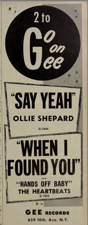 Say Yeah (B+): An exciting new rock and roller that's starting to make noise in a number of territories, is hopped on by the Gee label with an exciting rendition by Ollie Shepard. Solid Teen fare that should go big with the kids.