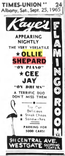 The last Ollie Shepard appearance I can find is at Kaye's Flamingo Room in Albany, New York, starting on September 20, 1965; but ads only ran until September 25. Now, however, he has "Cee Jay on the drums" (not further identified).