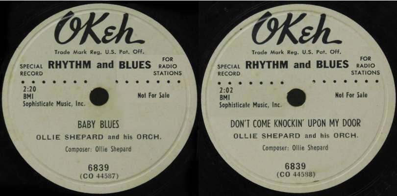 Ollie Shepard presents some mysteries to me. For one thing, he can't easily be pigeon-holed as to what kind of music he made. I'm not a big blues fan (when the harmonica comes out, I leave), but he only occasionally sounds like a down-home blues singer. His sound also encompasses Jive, Swing, Urban Blues, R&B, R&R, and even Pop to some extent. And I like most of it (or you wouldn't be reading this now). And, yes, his name could be rendered as "Shepard", "Shepherd", "Sheppard", and even "Shepord".