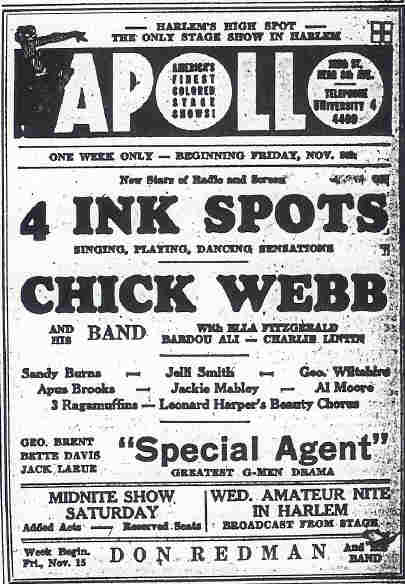 Spots group was at the Apollo Theatre in Harlem, New York beginning 3Aug/34.
