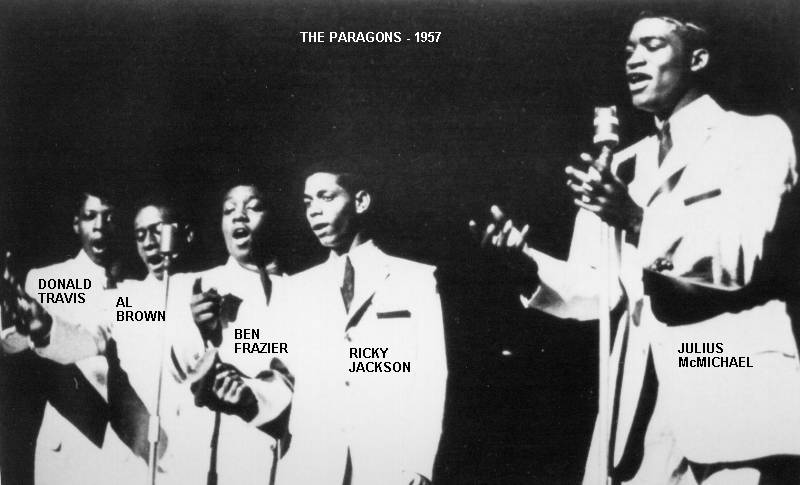 The Paragons, who formed in 1955, were from various parts of Brooklyn. It all started with three guys from Bedford-Stuyvesant, who were trying to get a group together: bass Al Brown, first tenor Ricky Jackson, and baritone Donald Travis. Al was close with a guy from neighboring Brownsville: a second tenor named Gable "Ben" Frazier (so close, in fact, that they called each other "cousin"). Donald's sister knew and recommended a first tenor named Julius "Mack" McMichael (from East New York); he ended up as their lead. They were all over 18, except for Ben, who was 14 at the time.