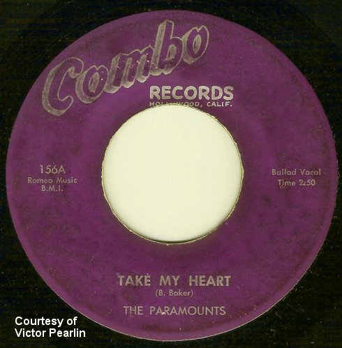 The Paramounts practiced and practiced, but never made a single appearance. In early 1959, Walter brought them to Vernon "Jake" Porter's Combo label (at 1107 El Centro in Hollywood, although recordings were done at his home at 506 North Virgil Avenue in Los Angeles). Porter, a trumpet player who'd been with Benny Carter, Fletcher Henderson, Slim Gaillard, and Fats Waller, still had a combo at the time.