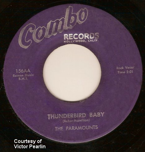 The Paramounts recorded four songs for Combo: "Take My Heart" (led by Bobby Baker), "Thunderbird Baby" (all), "The Rumba" (three-part harmony lead by Bobby, Ernest, and James), and "Just Once More" (fronted by Ernest). Actually there were five voices present at the session. They guys recruited John Blalock's brother, Lee, to sing bass on "Thunderbird Baby" (he didn't sing on the other songs). He was never a member of the group, but was with his brother John most of the time and knew all their arrangements.
