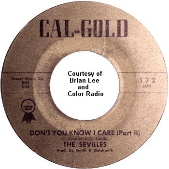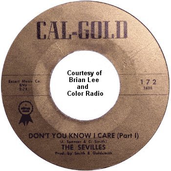 The Sevilles then recorded "Don't You Know I Care (Part 1 and 2)" for Cliff Goldsmith's own Cal-Gold label, with James Spencer doing the Isley Brothers-type lead on both sides. The record was released in January 1962 and given an "excellent" rating on January 27. Other reviews that week were for Etta James' "Something's Got A Hold On Me," the G-Clefs' "A Girl Has To Know," Jimmy Witherspoon's "Warm Your Heart," and the Original Checkers' "Over The Rainbow."