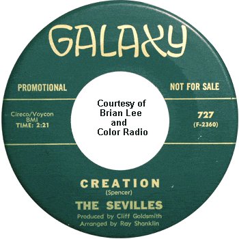 The Galaxy record wasn't sent out for review and this proved to be the last gasp for the group. However, Cliff Goldsmith leased four songs from John Manascalco and put them out on Galaxy. The first two were reissues of "Charlena" and "Loving You (Is My Desire)" in June 1963. The other two were "Creation" and "Baby," both recorded in 1961 and led by James Spencer. These were released, with no chart action at all, in April 1964.
