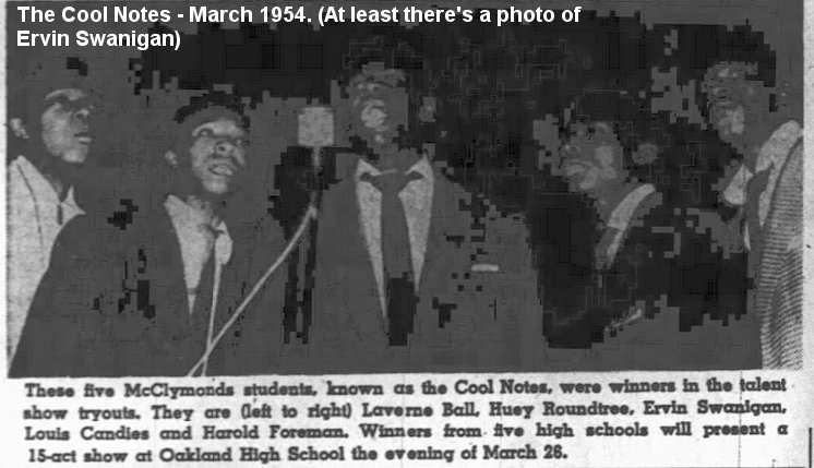 So they returned to Oakland, disheartened, but not discouraged. They entered a talent contest at McClymonds in March 1955. The March 14 Oakland Tribune almost got it right: