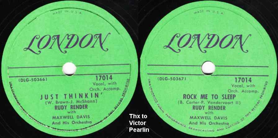 Rudy Render was inked by London Records as the first artist in the diskery's rhythm and blues department. Render, an Indiana lad who sounds like a cross between Charley Brown and Billy Eckstine, unsuccessfully knocked on doors here in search of recognition.