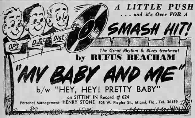 A January 1952 ad for "My Baby And Me" named Henry Stone as Rufus' manager. A record distributor, he owned Stone Distributing in Miami, as well as Rockin' Records (and, in the future, Chart Records).