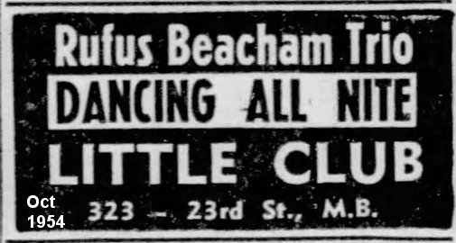 Rufus Beacham & His Combo were at the Cafe Society in Miami for the July 4 holiday. There was only a single ad, so I don't know how long the show lasted. It did say he was back by popular demand.