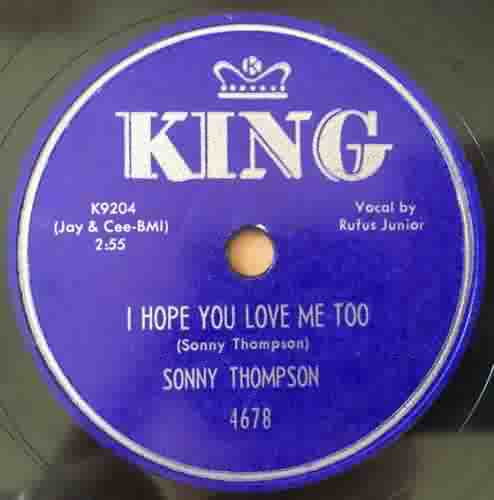 On October 29, 1952 (as far as I can determine). Rufus recorded four songs for King Records with Sonny Thompson's band (all labels credit Sonny Thompson, with a vocal by "Rufus Junior"): "My Heart Needs Someone", "Insulated Sugar", "Four Thirty In The Morning", and "I Hope You Love Me Too". Three of these would be released as flip sides of Sonny Thompson instrumentals (all of which had been done at other sessions).