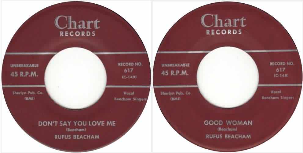 In April or May 1956 Rufus recorded a couple of songs for Henry Stone's Chart label: "Good Woman" and "Don't Say You Love Me". These were done with the Beacham Singers, whoever they might have been (never otherwise identified). He copyrighted both songs on May 16, but the record wasn't sent out for review.