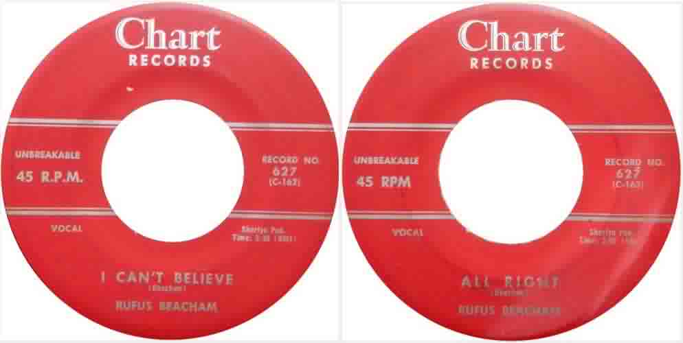 Another session for Chart resulted in a July release: "I Can't Believe", backed with "All Right". Again, a Chart record wasn't sent out for review. Both sides have a group (although the "Beacham Singers" weren't mentioned on the label of this one), but on "All Right", his voice is so low and echoic that it sounds like he was down the hall from the microphone.