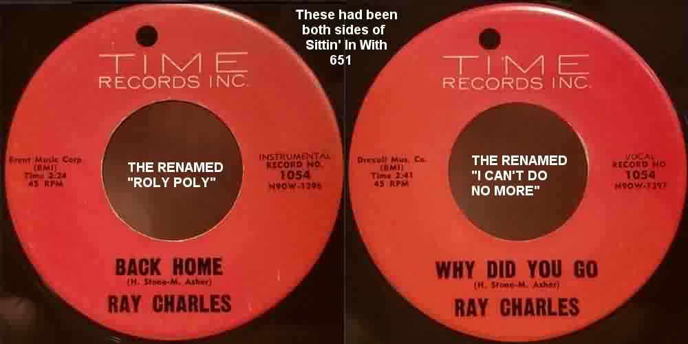 In July 1962, Bob Shad re-released "Roly-Poly" and "I Can't Do No More" (the 1952 Sittin' In With tunes) on his Time label. However, "Roly-Poly" was renamed "Back Home" and credited to Ray Charles, with no mention of Rufus Beacham. "I Can't Do No More" was renamed "Why Did You Go", and, once again doesn't mention Rufus.