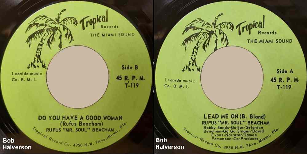 Rufus's last recordings were for Tropical Records of Miami. Around 1970 "Rufus 'Mr. Soul' Beacham" released "Do You Have A Good Woman", coupled with "Lead Me On". "Do You Have A Good Woman" is pretty much a funk reworking of his 1956 Chart tune, "Good Woman". However, the acoustics on it are awful and it sounds like he's trying to drown himself out with his organ playing. The label was owned by Frankie Seay, who, when he started "The Inkspots '82", said he was a nephew of Joe Boatner.