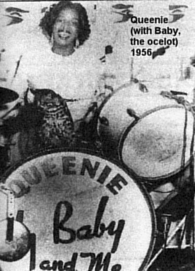 After this, we don't hear of Rufus again until he married Nesby Evelyn Green in August 1951. Nicknamed "Queenie", she was a beautician at the time, but would soon become the drummer in his band (which, by now, was called the Tampa Toppers). With one further exception, no other members of any Beacham band were ever named. Queenie had a pet ocelot, Baby, who appeared with the band (although I'm not sure what instrument it played).